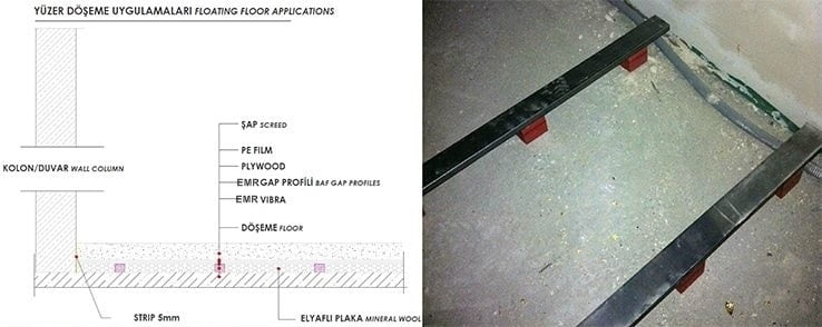 Genellikle bir malzeme ile zemin, tavan, duvar arasında yerleştirilir ve yüksek frekanslı titreşimleri emmek veya yansıtmak için tasarlanmış malzemelerden üretilirler. Bu, zeminde meydana gelen titreşimleri azaltarak, yapıların titreşimlerden etkilenmesini önlemeye yardımcı olur.
