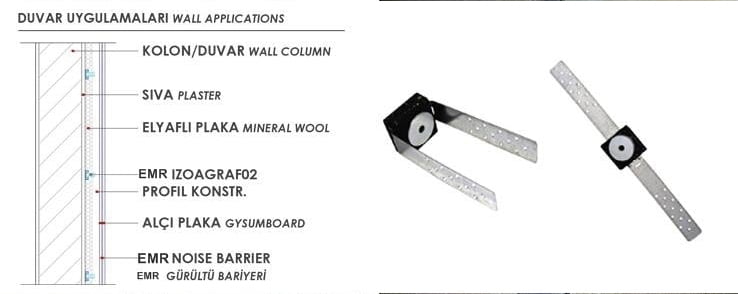 Akustik İzolatörler Yanmazlık : Kullanılan materyallere bağlı yangın dayanımı vardır. Duvar ürünleri, giydirme duvar imalatlarında, duvar taşıyıcı konstrüksiyonları ile diğer yapı elemanlarının doğrudan temasını engellemek için birbirinden ayıran titreşim sönümleyici malzemelerdir. Ürünler, farklı detaylarda, akustik ihtiyaçlara göre duvar ses yalıtımı çözümleri sunar. Ses izolasyonu, ihtiyaca göre farklı ürünler ve detaylarla tasarlanmalıdır. Bu amaçla, duvar ürünleri, detay gereksinimlerini karşılamak için, standart yapı elemanları dışında ses izolasyonunu değerlerini artıracak olan ses bariyerleri, akustik şilteler ve hacim akustiğini sağlamak için kullanılan farklı model ve ebatlarda akustik süngerler, akustik kumaş kaplı ürünler ile beraber de kullanılabilirler.