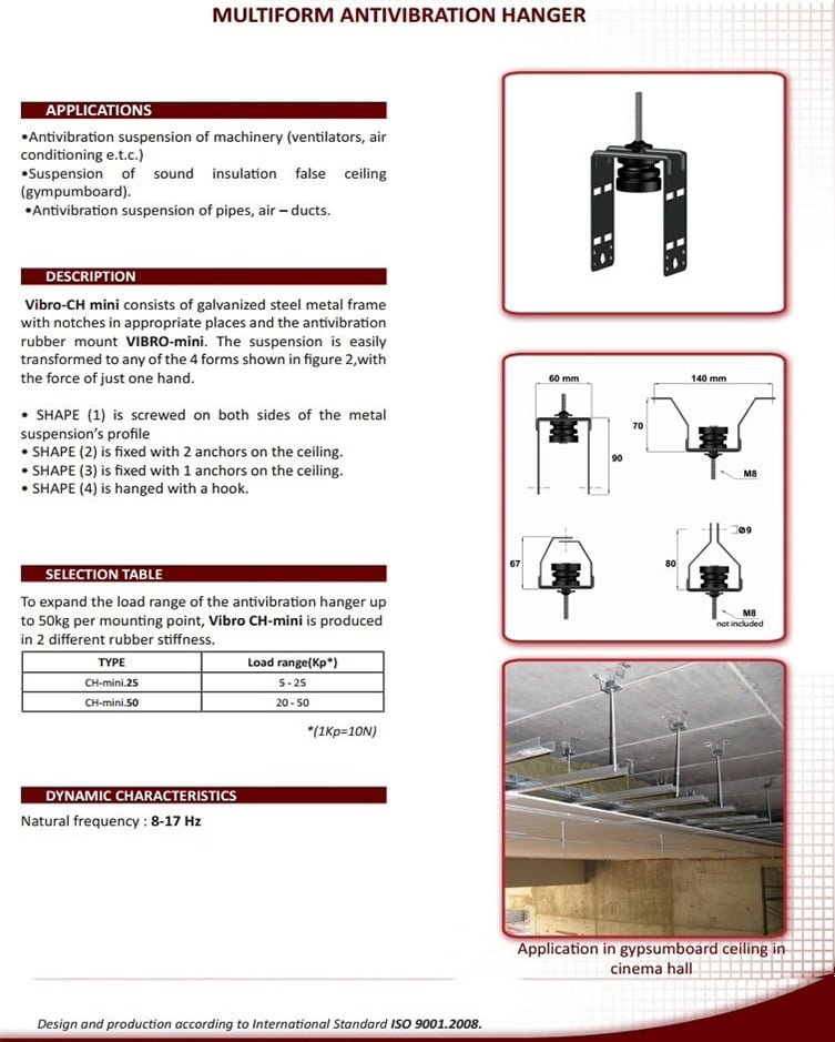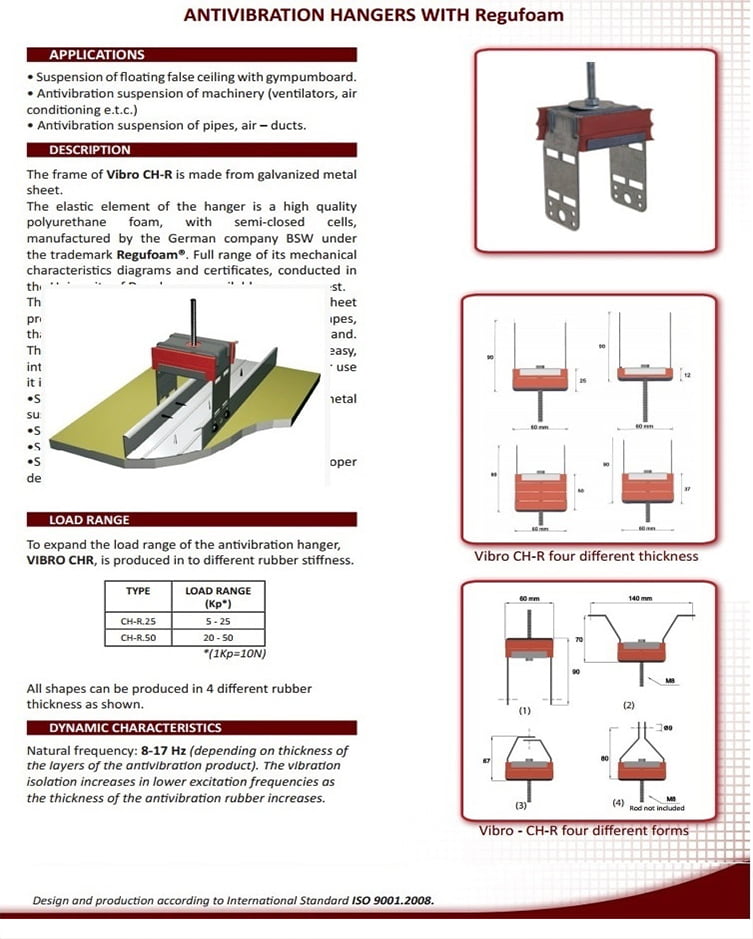 Akustik İzolatörler Opsiyonlar : Kauçuk ve yaylı olmak üzere anti vibrasyonu artırılmış çelik saplama ve ağraf olarak satılır.