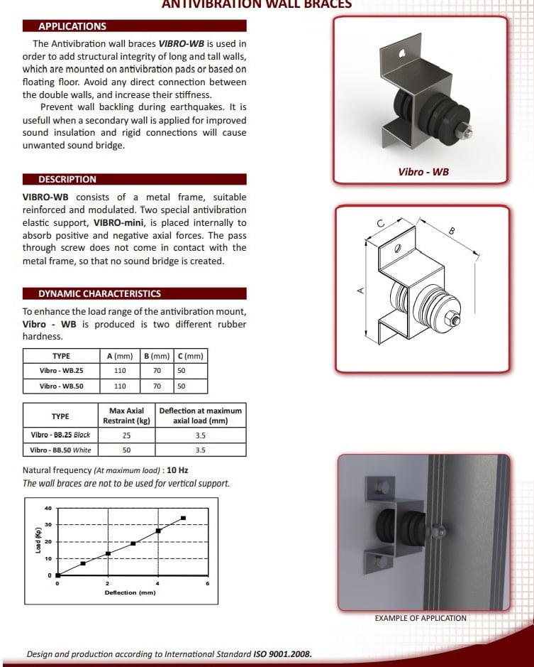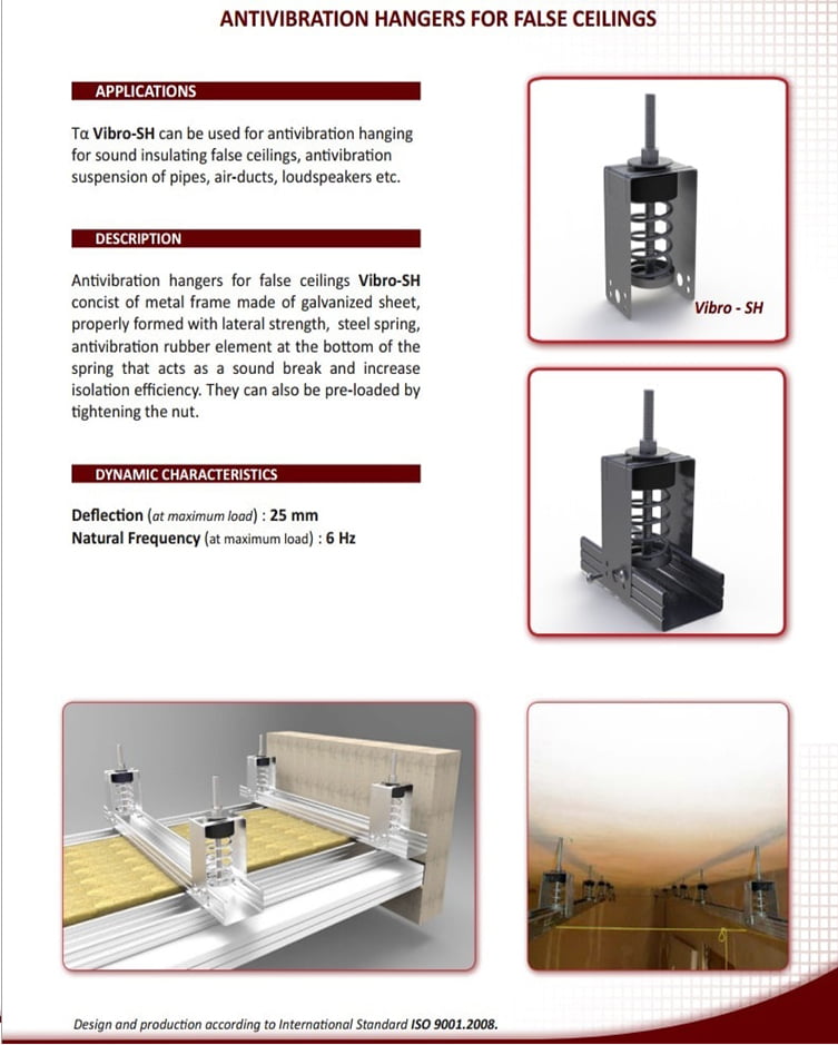 Akustik Titreşim İzolatörleri : Sismik rahatsızlıklar esnasında cihaz hareketini sınırlamak için çok yönlü esnek sınırlayıcılarla yay titreşim yalıtımını birleştirmek için mekanik cihazlar için Entegre Sismik Montaj Elemanları tasarlanmıştır.
